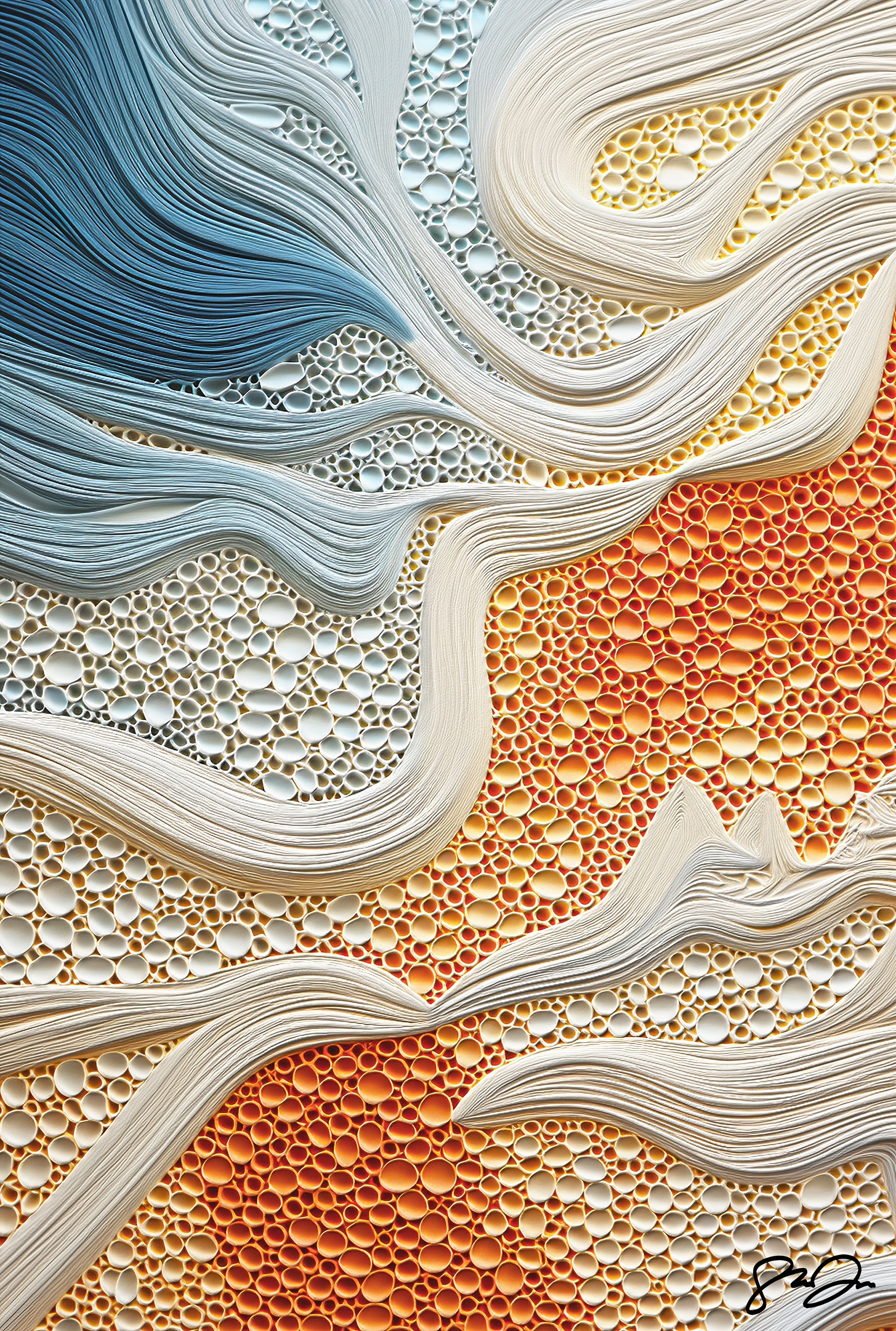 Contained within this art collection are distinctive, abstract, dream-like experiences, beginning with an Anomaly A.I. and encompassing figurative-abstractions, paintings, sculptures, printmaking, movements, colors, and emotions while concluding with the same artwork, forming a loop (Déjà-vu) that symbolizes the repetition and rituals of our daily life, thereby shedding light on their significance or mundanity.