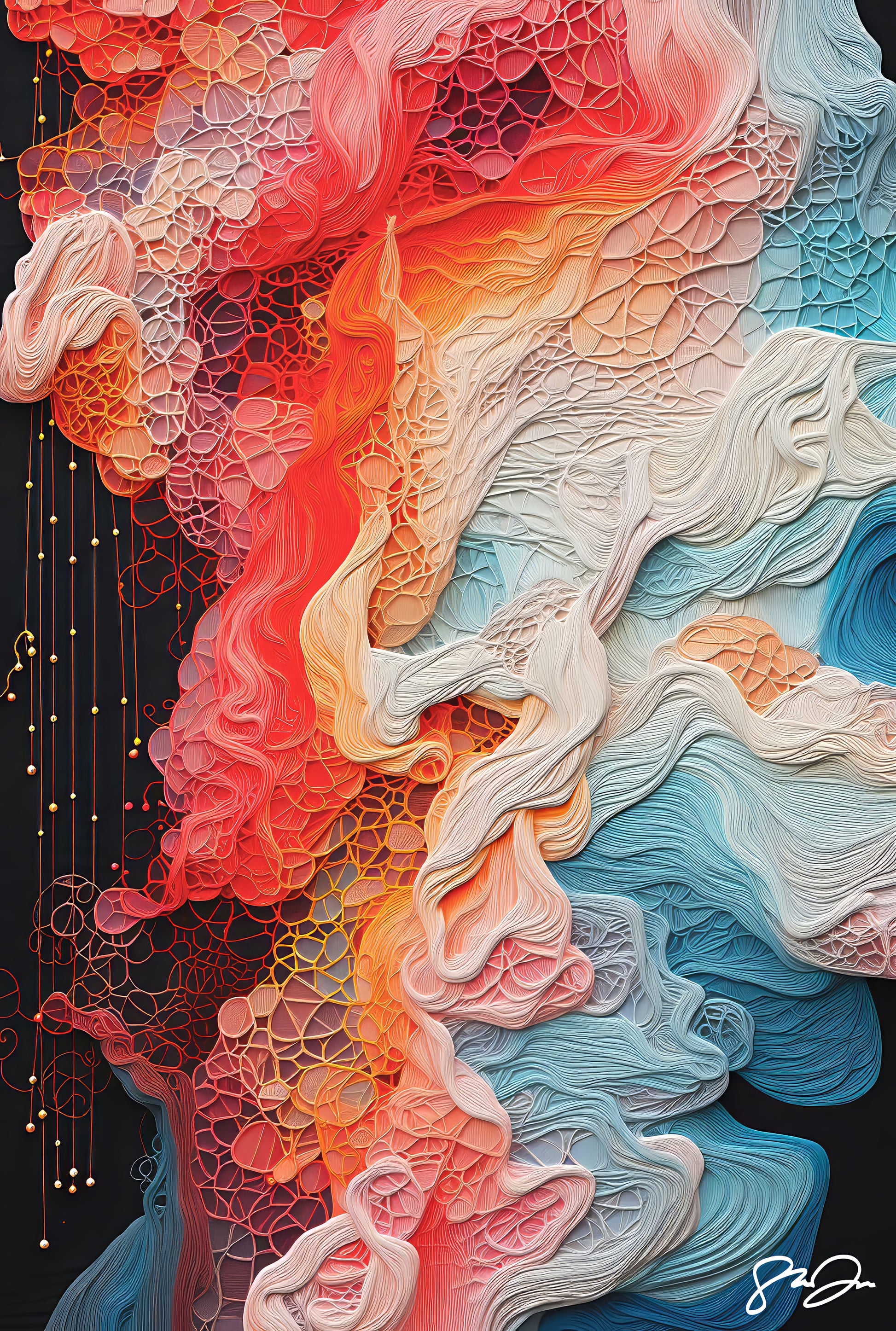 Contained within this art collection are distinctive, abstract, dream-like experiences, beginning with an Anomaly A.I. and encompassing figurative-abstractions, paintings, sculptures, printmaking, movements, colors, and emotions while concluding with the same artwork, forming a loop (Déjà-vu) that symbolizes the repetition and rituals of our daily life, thereby shedding light on their significance or mundanity.